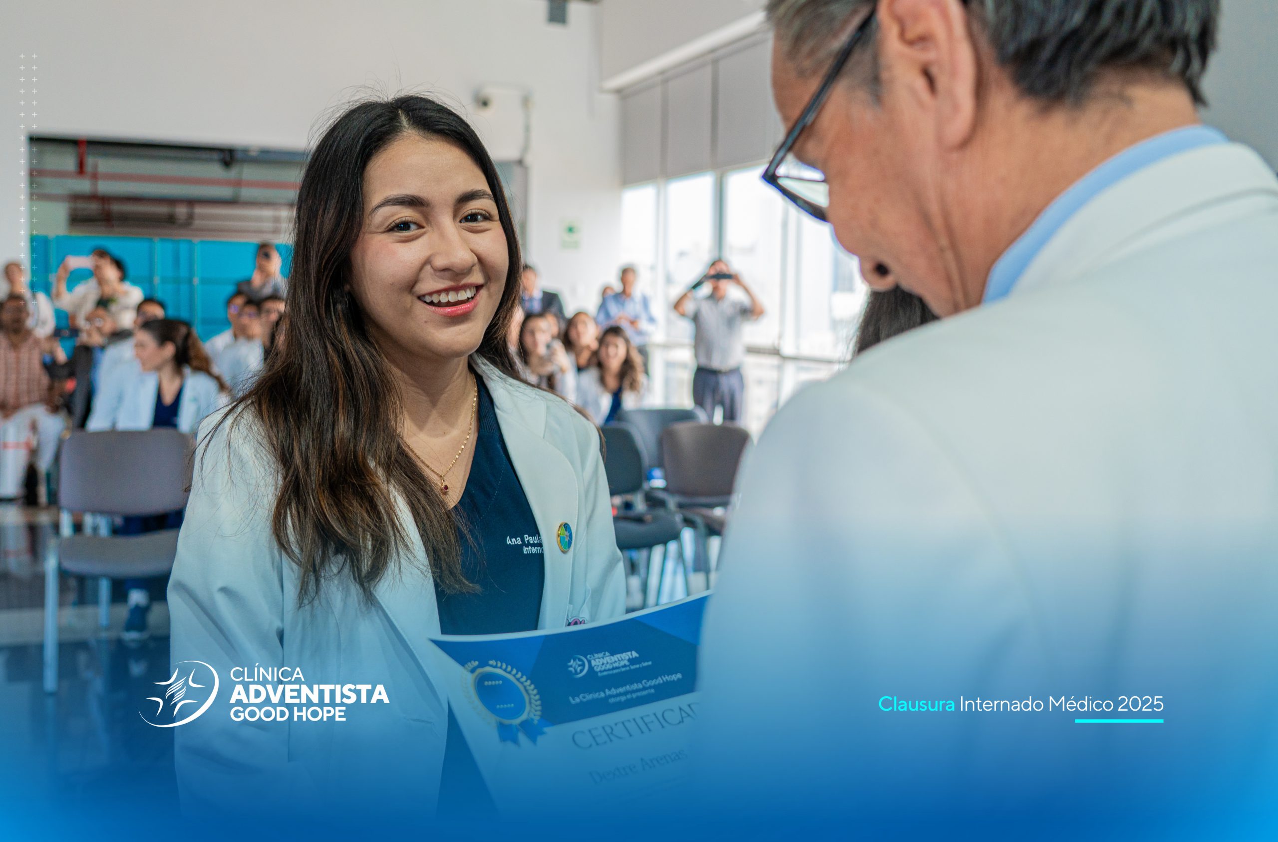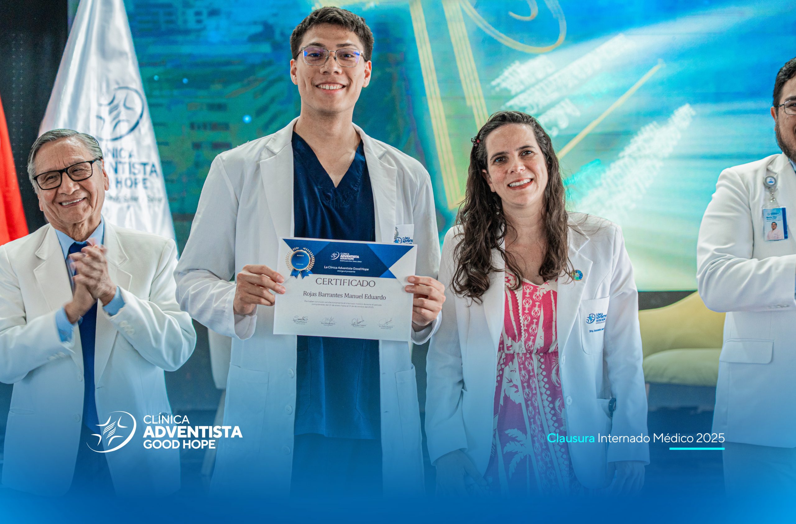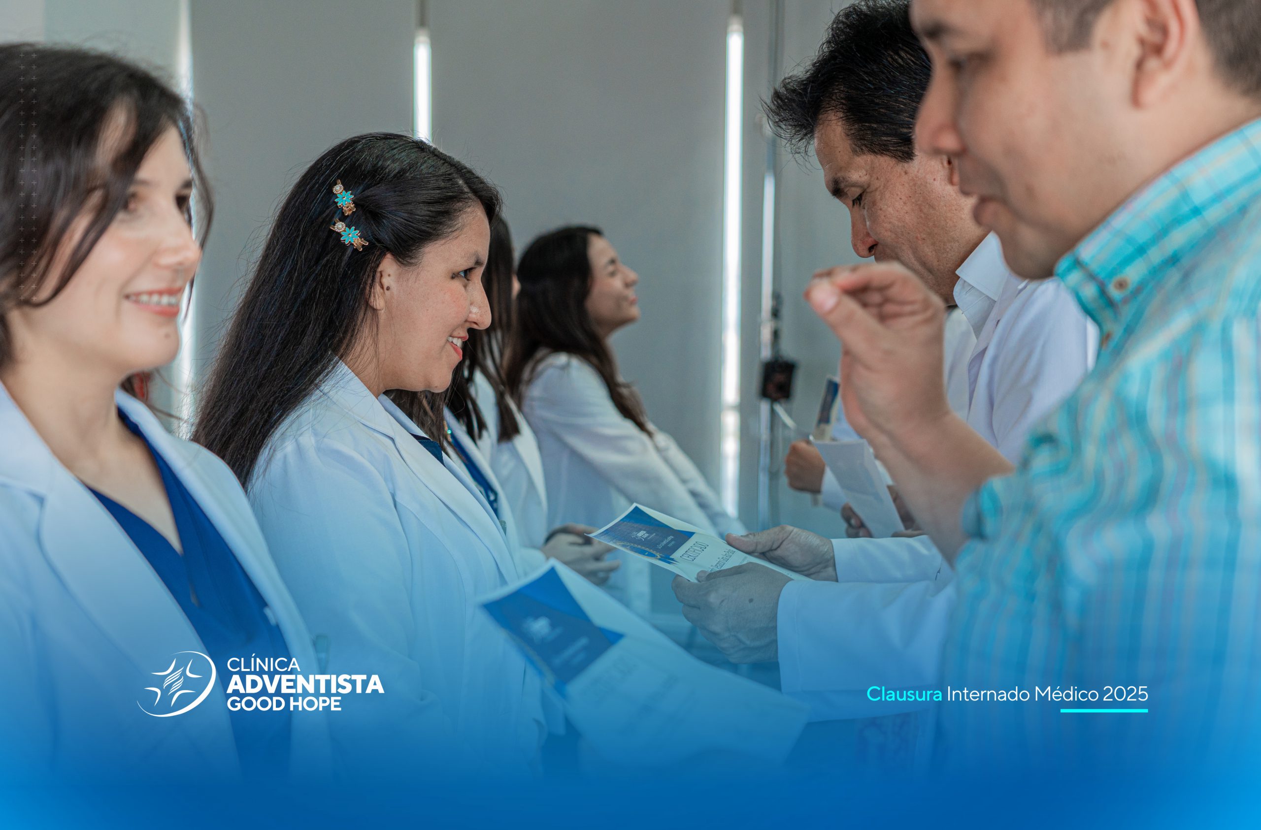 La Clínica Adventista Good Hope realizó hoy, lunes 29, en horas de la mañana, la ceremonia de clausura del programa de internos, un evento que marcó el cierre de una etapa clave en la formación académica y profesional de futuros médicos, reafirmando el compromiso de nuestra institución como clínica docente al servicio de la educación en salud.